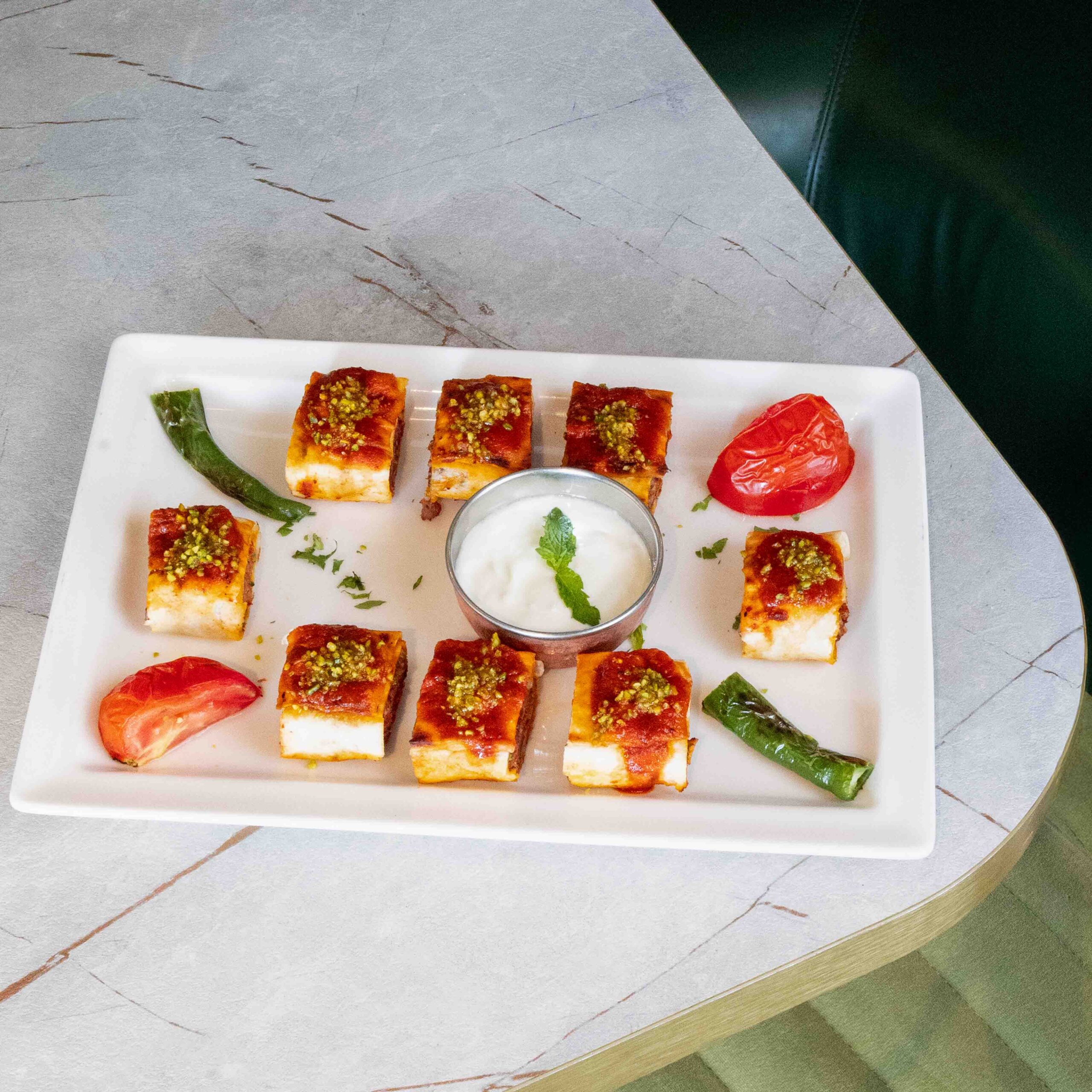 Lamb kebab with special Chef marination, wrapped with fresh bread, topped with bursa butter